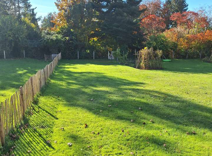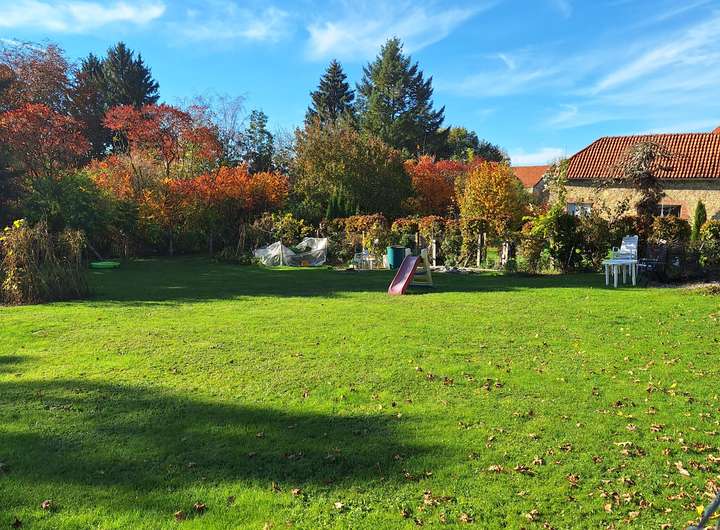 Das Grundstück befindet sich in einer sehr zentralen Lage mit kurzen Wegen in den Ortskern, zur Schwimmhalle und zu den Supermärkten und trotzdem liegt es idyllisch und ruhig.