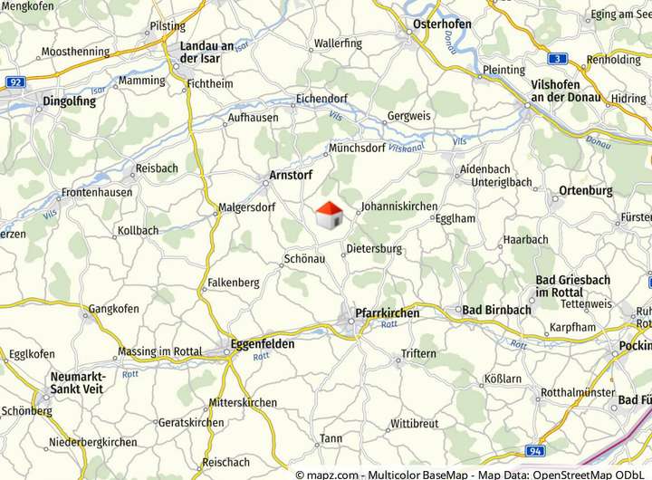 Die Kreisstadt Pfarrkirchen liegt nur etwa 7 Kilometer entfernt und bietet eine hervorragende Infrastruktur mit Einkaufsmöglichkeiten, Ärzten, Schulen, Kindergärten sowie vielfältigen Freizeit- und Kulturangeboten. Auch die Gemeinden Arnstorf, Eggenfelden und Simbach am Inn sind in kurzer Fahrzeit erreichbar.