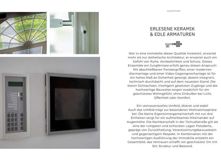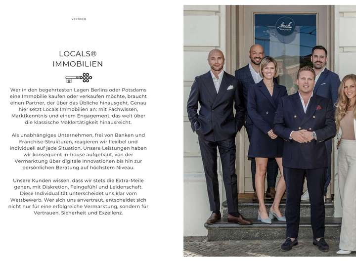 Professionelle Vermarktung auf internationalem Niveau. Ansprache unserer vorgemerkten Kaufinteressenten aus Berlin, Potsdam sowie dem In- und Ausland. E-Mail-Marketing und Newsletter. Buchen von Premiumplatzierungen auf wichtigen Immobilienportalen (auch international). Bewerben des Objektes in Social-Media, Google adwords-Anzeigen und auf unseren Webseiten sowie in ausgewählten Tageszeitungen und Luxusmagazinen.