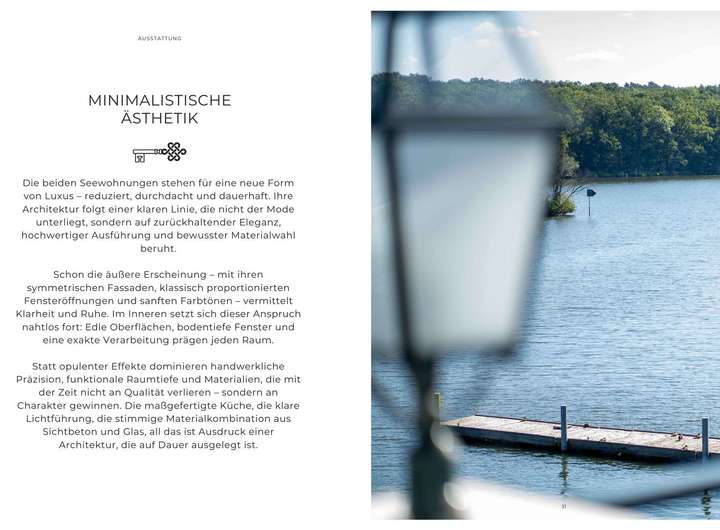 Ein echtes Alleinstellungsmerkmal: Der eigene Bootsanleger direkt am Grundstück. Wer möchte, kann zwei Boote zusätzlich erwerben, so wird der See zum Teil des täglichen Lebens.