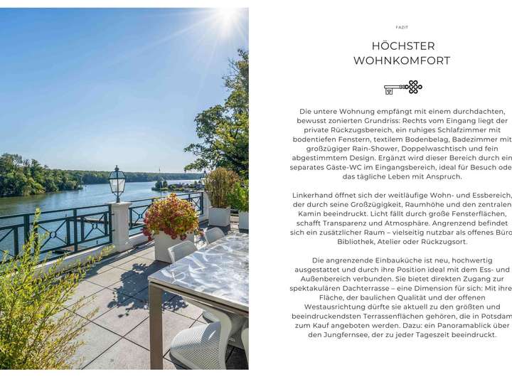 Ob als Generationenwohnen, Familie mit erwachsenen Kindern, Wohnen & Arbeiten unter einem Dach oder als hochwertige Kapitalanlage, diese Kombination ist nicht nur flexibel, sondern einmalig in Potsdam. Zwei Wohnungen, ein Gesamtbild aus Licht, Wasser und Raum