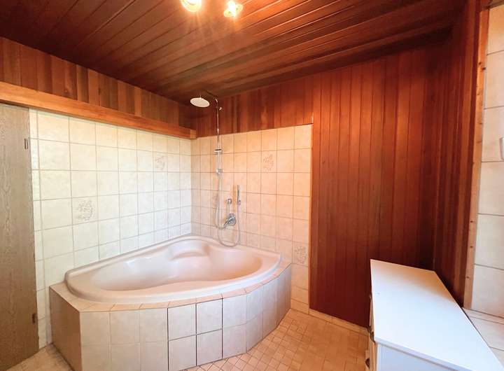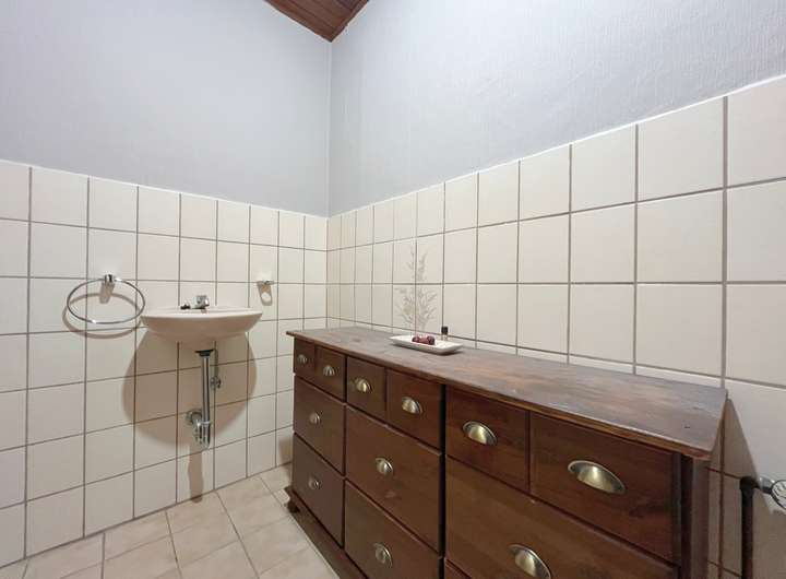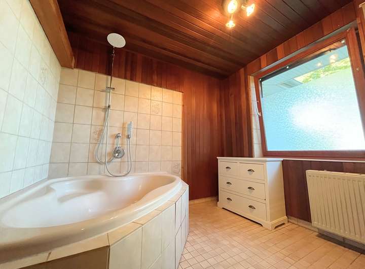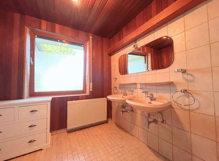 Im Obergeschoss stehen Ihnen ein sehr großzügiges Badezimmer – mit Platz für eine Badewanne, sowie zwei weitere Schlafzimmer und einer neuen Küche zur Verfügung. Hier besteht noch Renovierungsbedarf, was Ihnen die Möglichkeit gibt, Ihre eigenen Vorstellungen umzusetzen. Ursprünglich war die Aufteilung in zwei Wohnungen geplant; entsprechende Abtrennungen lassen sich jedoch leicht zurück bauen, sodass die Räume flexibel genutzt werden können.