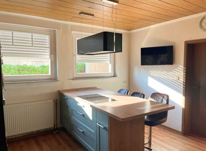 Ebenfalls im Erdgeschoss liegt die 2009 errichtete Einliegerwohnung mit separatem Eingang. Auf rund ca. 52 m² bietet sie einen offenen Wohn-/Küchenbereich, ein Schlafzimmer und ein modernes Bad mit bodengleicher Dusche. Eine Fußbodenheizung sorgt, außer im Schlafzimmer, für angenehmen Komfort. Die eigene, eingezäunte Terrasse mit Gartenanteil und Holzschuppen schafft Privatsphäre.