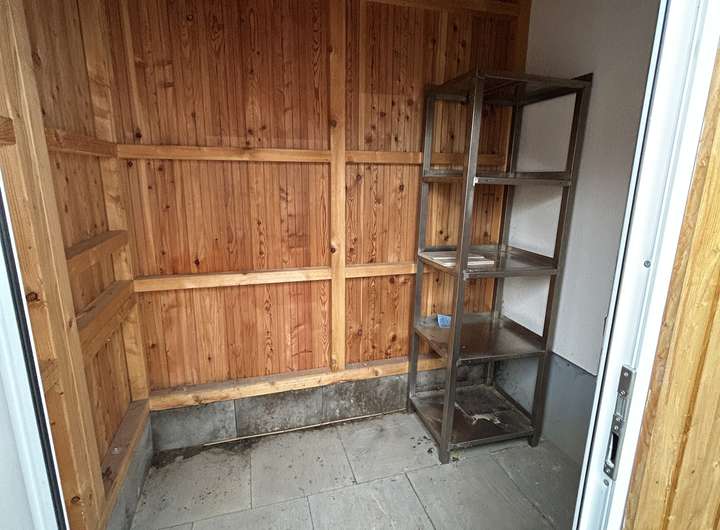 Ein zusätzlicher Abstellraum für Waschmaschine, Bügelbrett usw. steht ebenfalls zur Verfügung. Ein weiterer Abstellraum befindet sich auf der Terrasse.