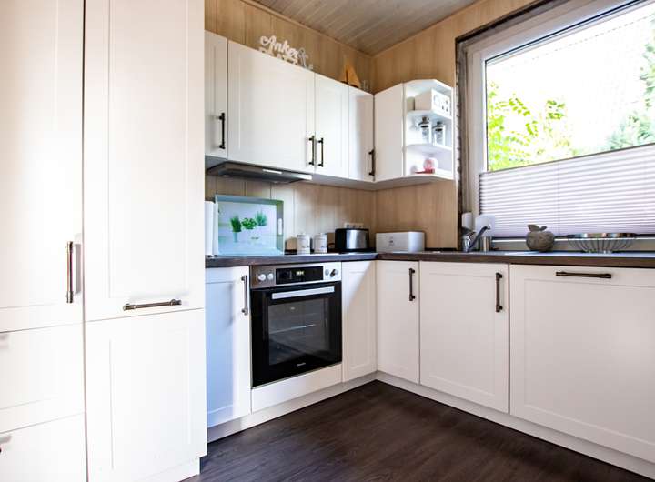 Innen erwartet Sie eine praktische Raumaufteilung mit viel Potenzial, die Sie ganz nach Ihren eigenen Vorstellungen gestalten können. Die Böden sind mit Laminat und Fliesen verlegt, einige Wände sind mit Holzvertäfelungen versehen und verleihen den Räumen eine gemütliche Atmosphäre. Das Badezimmer verfügt über eine Dusche, ein Waschbecken und einen Anschluss für Ihre Waschmaschine.