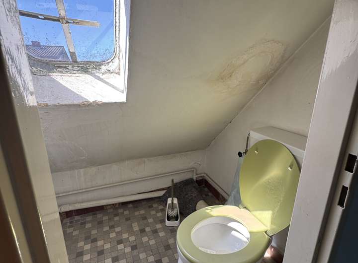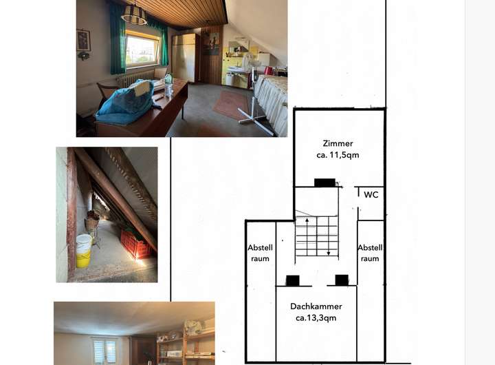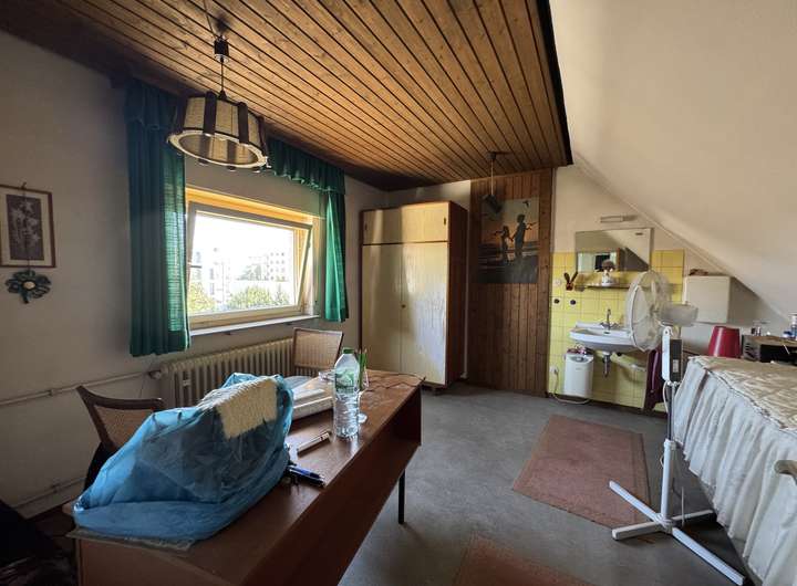 Dachgeschoss: 1 Zimmer mit Waschbecken und WC befindet sich unter der