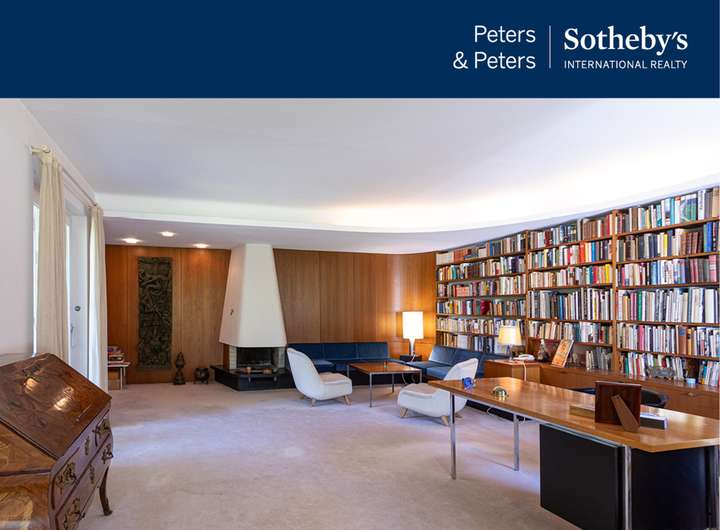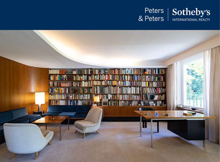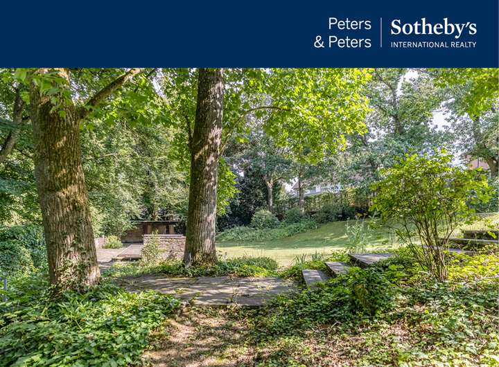 Über eine Treppe betritt man diesen besonderen Garten, der sich wie ein verborgenes Paradies hinter dem Haus öffnet. Eine weitläufige Rasenfläche, umrahmt von altem Baumbestand, bietet zu jeder Jahreszeit eine malerische Kulisse. Der Garten ist vollständig eingewachsen und nicht einsehbar – ein Ort vollkommener Privatsphäre. Zwischen Rhododendron, Sträuchern und hohen Bäumen laden verschiedene Sitzplätze zum Verweilen ein, abends stimmungsvoll beleuchtet. Blickfang ist der stillgelegte Pool, heute als Sonnenterrasse genutzt. Die Natursteinmauer mit Nerobergblick und das charmante Poolhäuschen mit überdachtem Sitzbereich erinnern an elegante Gartenkultur und bieten Raum für Feste oder stille Stunden. Das Flurstück ist mit 939 m² ist als Baugrundstück ausgewiesen. Am unteren Ende des Anwesens liegt ein weiterer, fast waldartiger Gartenbereich. Unter hohen Bäumen führen gekieste Pfade vorbei an Farnen und Efeu, nostalgische Laternen tauchen ihn abends in sanftes Licht. Hier liegen zwei weitere Flurstücke (mit 1.425 m² und mit 291 m²), bedingt baulich nutzbar. Auf dem größeren Grundstück steht ein kleines Gartenhaus – ideal als Rückzugsort, Atelier oder Spielhaus. Ein Gartentürchen führt direkt zum idyllischen Fußweg ins Nerotal. Die Villa selbst zeigt sich straßenseitig zurückhaltend, öffnet sich jedoch gartenseitig mit klarer, eleganter Architektur. Großflächige Fenster und mehrere Terrassen lassen Innen- und Außenräume verschmelzen. Eine u-förmige Terrasse begleitet den Wohnbereich, weitere Terrassen liegen im Garten- und Eingangsgeschoss. Im Inneren bewahrt die Villa den unverwechselbaren Stil der 50er-Jahre: warme Holzvertäfelungen, maßgefertigte Einbauten und ein markanter Kamin prägen den repräsentativen Wohnbereich. Esszimmer und Wohnzimmer gehen fließend ineinander über, stets mit Blick in den Garten. Küche, Schlafzimmer im Dachgeschoss, wohnlich ausgebaute Räume im Gartengeschoss sowie praktische Nebenräume runden das Raumangebot ab.