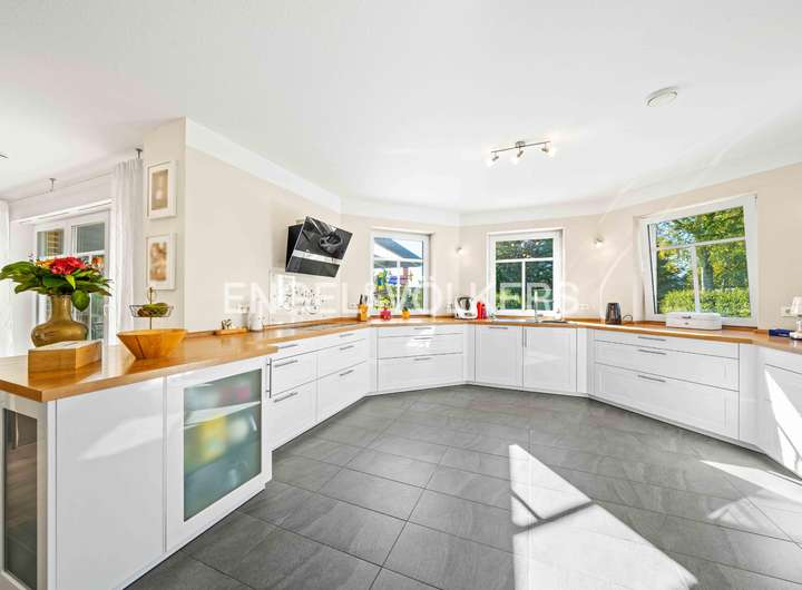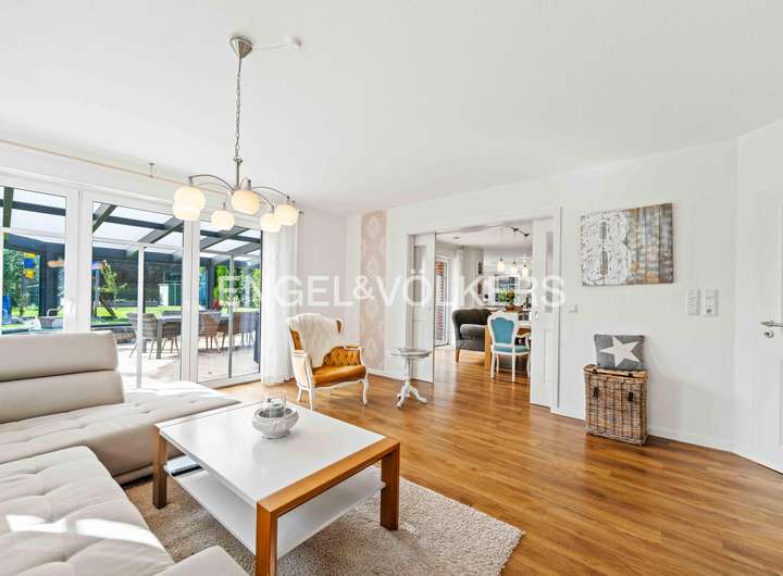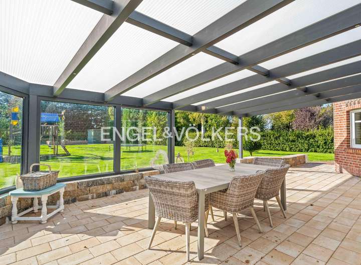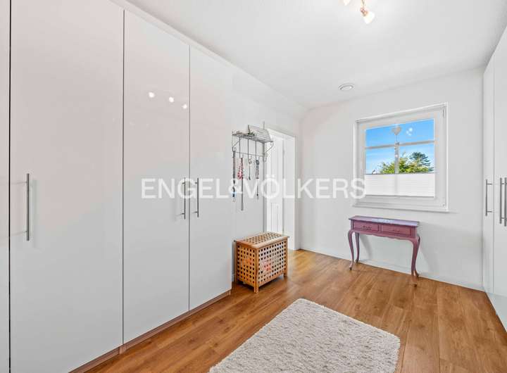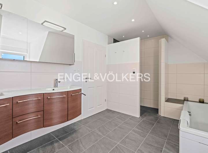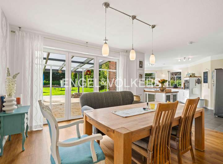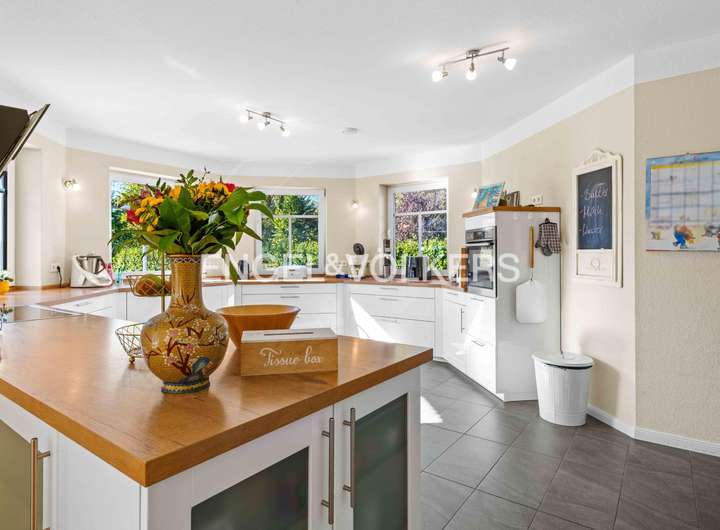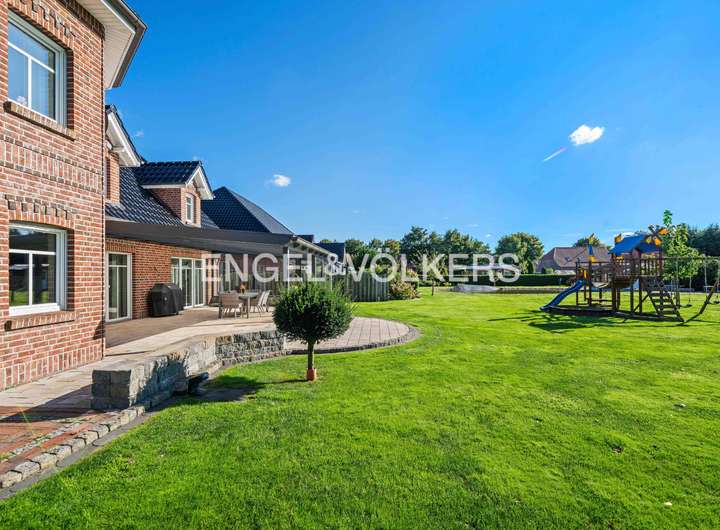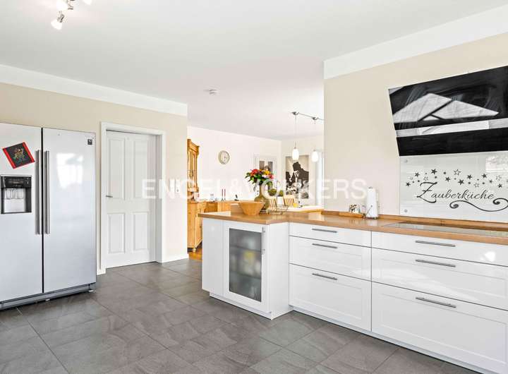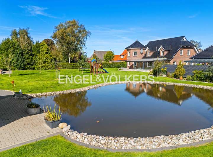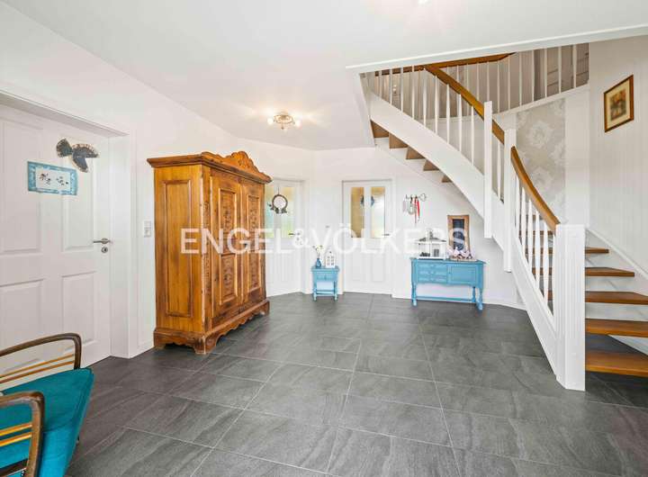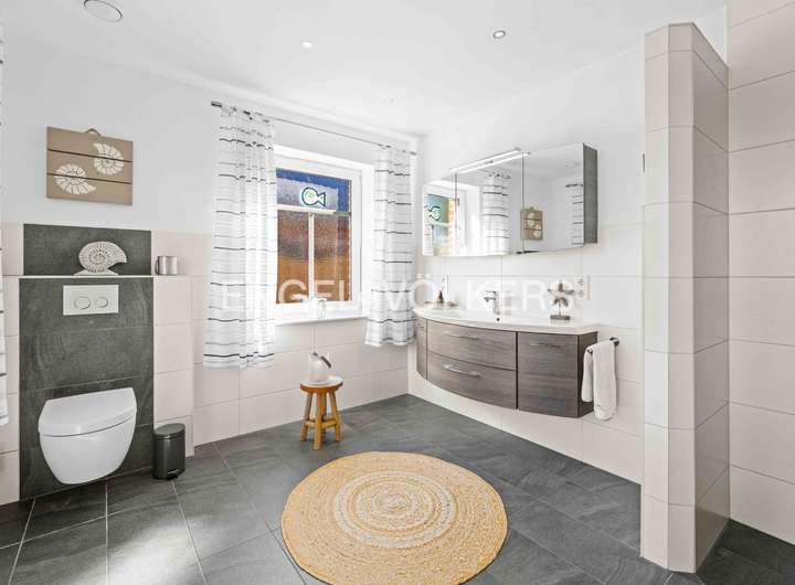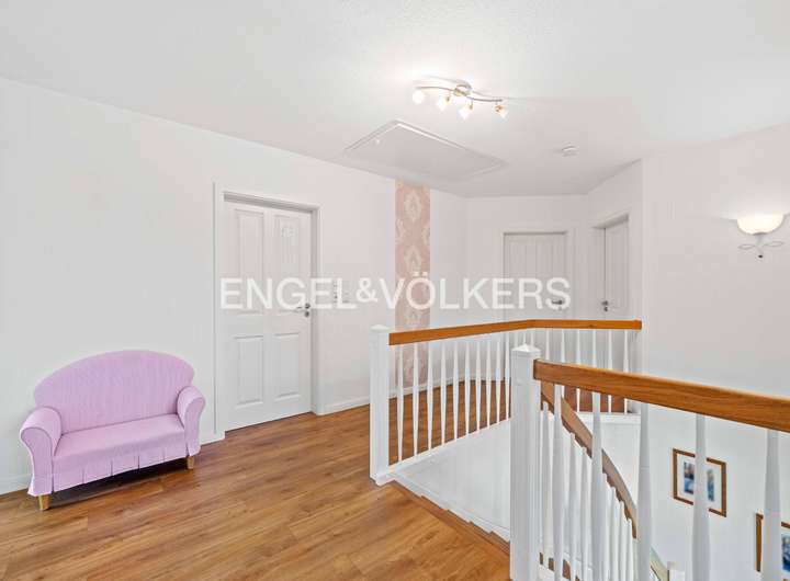 Dieses moderne Einfamilienhaus wurde 2016 erstmals bezogen. Es steht auf einem großzügigen Grundstück von ca. 2.380 m² und bietet mit rund 189 m² Wohnfläche ein komfortables Zuhause für Familien, die Wert auf hochwertige Ausstattung und viel Platz legen. Das Haus ist mit einer effizienten Erdwärmeheizung mit Tiefenbohrung ausgestattet und verfügt über eine durchgängige Fußbodenheizung. Eine Be- und Entlüftungsanlage sorgt für angenehmes Raumklima, während elektrische Außenrollos und dreifach verglaste Fenster zusätzlichen Komfort bieten. Ein Glasfaseranschluss rundet die moderne Haustechnik ab. Im Erdgeschoss gelangt man über den gefliesten Flur mit Fußbodenheizung in die Wohnräume. Hier befindet sich ein Badezimmer mit ebenerdiger Dusche und integriertem Lautsprecher, das helle Wohnzimmer mit Vinylboden sowie die großzügige Küche, die mit AEG-Geräten, Abzugsanlage und Zugang zur praktischen Speisekammer überzeugt. Ergänzt wird das Raumangebot durch einen Hauswirtschaftsraum mit Anschlüssen für Waschmaschine und Trockner, Abstellmöglichkeiten, Waschbecken und Heizungsanlage. Besonders praktisch ist die große Doppelgarage mit elektrischem Tor, integriertem Werkstattbereich und festem Zugang zum Dachboden über eine Betontreppe. Das Obergeschoss bietet ein durchdachtes Raumkonzept: Neben einem Büro, zwei Kinderzimmern mit Vinylboden und einem Gästezimmer findet sich hier ein weiteres Badezimmer mit Dusche, Badewanne und WC. Ein Ankleidezimmer führt in das Turmschlafzimmer, das mit einem stimmungsvollen LED-Sternenhimmel ausgestattet ist. Ein Lichtsensor im Flur sorgt zudem für zusätzlichen Komfort. Der Außenbereich ist liebevoll angelegt und bietet zahlreiche Highlights: Ein großer Schwimmteich lädt zum Entspannen ein, während die überdachte Terrasse mit ca. 10 × 6 m Fläche und LED-Beleuchtung als idealer Treffpunkt für gesellige Stunden dient. Eine gemütliche Feuerstelle sowie eine Blockhütte von etwa 5 × 5 m ergänzen das Freizeitangebot. Zwei Brunnen versorgen die Gartenbewässerung. Ein Anschluss in der Garage speist die Außenzapfhähne am Haus. Im hinteren Garten sorgt eine Tiefenbohrung – nach Anschluss einer Pumpe – für zusätzliche Wasserentnahme. Obstbäume wie Apfel und Kirsche verleihen dem Garten zusätzlichen Charme. Dieses Einfamilienhaus kombiniert moderne Haustechnik mit großzügigen Wohnflächen und einem traumhaften Grundstück. Es bietet seinen Bewohnern nicht nur ein hohes Maß an Wohnkomfort, sondern auch vielfältige Möglichkeiten, die Freizeit im eigenen Zuhause zu genießen.