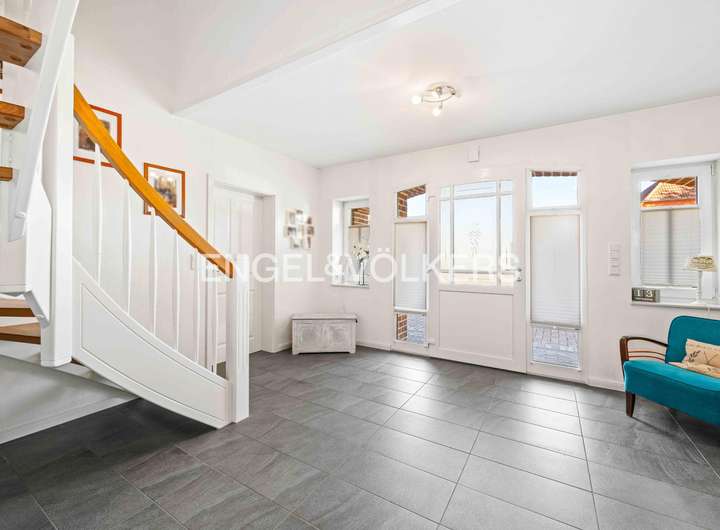 Dieses Wohnhaus liegt in einer zentrumsnahen Wohnlage in Großheide. Ihre Einkäufe können Sie Fußläufig beim Netto, Edeka oder Aldi erledigen. Das Ortszentrum mit weiteren Geschäften ist etwa 1 km entfernt. Dort befinden sich mehrere Banken, zwei Frisöre, ein Kosmetikstudio, eine Tankstelle, eine Apotheke, zwei Bäcker, eine Pizzeria, ein griechisches Restaurant und eine schnuckelige Eisdiele. Des Weiteren verfügt Großheide über gute Schulbildungsmöglichkeiten wie die Gesamtschule (Friederikenschule). Drei Kindergärten und eine Krippe ist auch ganz in der Nähe. Ein Jugendzentrum, welches viele Freizeitangebote bietet, fehlt in der Gemeinde natürlich nicht. Der Sport kommt hier ebenfalls nicht zu kurz, denn in Großheide gibt es einen großen Sportplatz sowie mehrere Sportvereine, die ein gutes Freizeitangebot bieten. Für die ärztliche Versorgung befinden sich im Ort zwei Ärzte, ein Allgemeinmediziner und ein Zahnarzt.