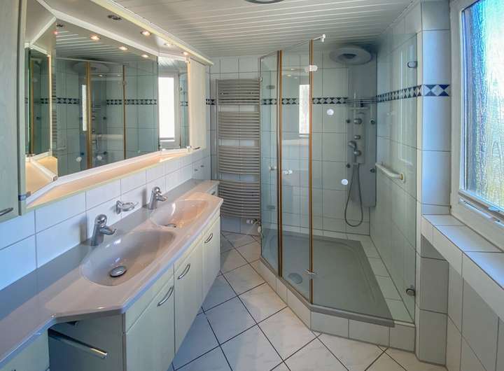 Auf dem Dachboden sowie im Keller finden Sie ausreichend Stauraum. Einen Wellnessbereich mit Sauna und Dusche sowie ein Raum, der bisher als Gastzimmer genutzt wurde, ergänzen das Untergeschoss.