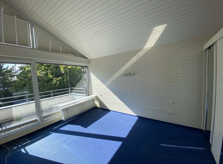 Im Obergeschoss sind 3 Zimmer vorhanden sowie das Badezimmer. Das Schlafzimmer mit Ausgang zum Balkon ist bis unter das Dach offen. Durch diese Gestaltung entsteht auch hier ein tolles Raumgefühl.