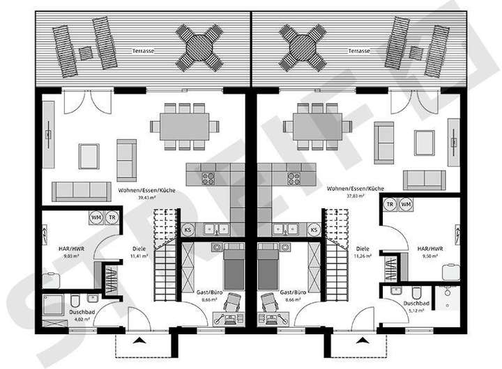 Willkommen in Ihrem neuen Traumhaus in Emmerting! Diese moderne Doppelhaushälfte, projektiert ganz nach Ihren individuellen Wünschen, bietet Ihnen mit 5 Zimmern und einer großzügigen Wohnfläche von 130 m² ausreichend Platz für Ihre Familie. Auf einem 450 m² großen Grundstück vereinen sich Komfort und Funktionalität in einem durchdachten Raumkonzept. Unser Projekt bietet Ihnen nicht nur die Möglichkeit, stilvoll zu wohnen, sondern auch die Flexibilität, Ihr Zuhause ganz nach Ihren Vorstellungen zu gestalten. Die Kombination aus modernen Doppelhaushälften, Generationenhäusern und effizienten Grundrissen sorgt dafür, dass auch auf kleineren Flächen ein großzügiges Wohngefühl entsteht. In Zeiten steigender Grundstückspreise in den Städten stellen wir Ihnen die perfekte Lösung bereit - ein modernes Zuhause, das nicht nur einladend, sondern auch nachhaltig ist. Jedes STREIF-Fertighaus ist bereits ein Energieeffizienzhaus KfW 40 EE, was Ihnen langfristig Kosten spart und zur Schonung der Ressourcen beiträgt.