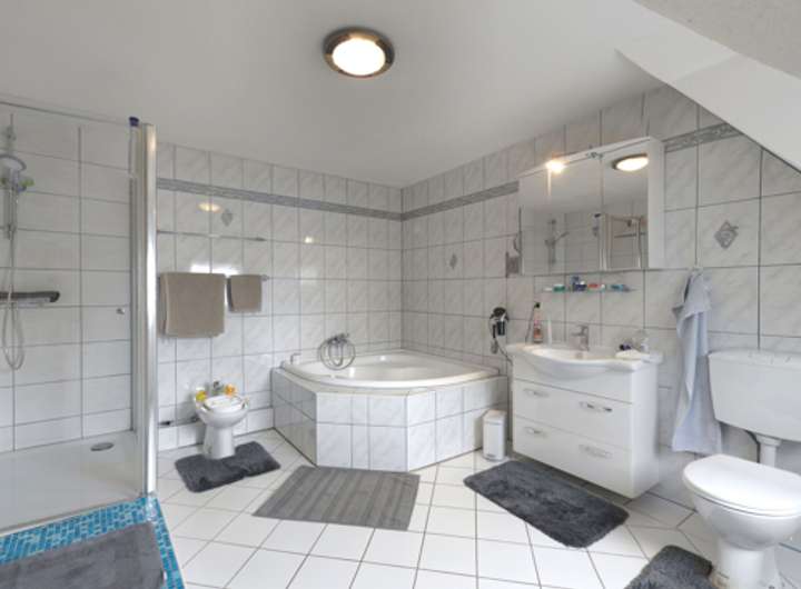 Das Tageslichtbadezimmer ist sowohl mit einer Badewanne als auch einer Dusche ausgestattet und bietet den Komfort, den man sich im Alltag wünscht. Ein zweites Duschbad rundet das Raumangebot und den Wohnkomfort zusätzlich ab – ideal für Familien oder Gäste.
