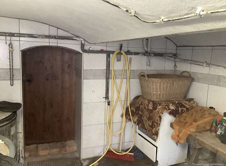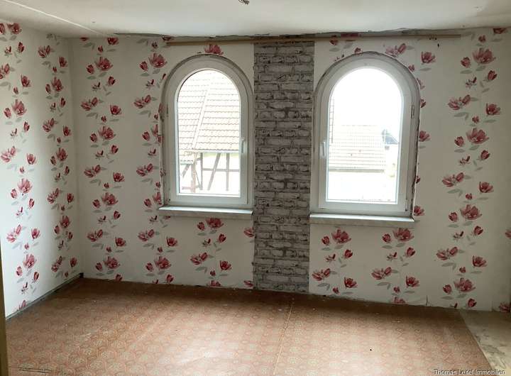 Das Verkaufsobjekt wird derzeit als EFH genutzt. Das EG ist vermietet. Auf Grund des Platzangebotes wäre aber auch ein Nutzung als ZFH denkbar. Die Immobilie besitzt einen deutlichen Sanierungs- bzw. Reparaturstau, was sich u. a. auch in der sehr einfachen Ausstattung widerspiegelt. So wurde zwar die Gebäudehülle teilweise in Klinkeroptik und teilweise mit Dachziegeln verkleidet und Fenster ausgetauscht, was beides allerdings bereit Anfang der 1990-er Jahre passiert. Die Beheizung erfolgt nach wie vor mittels Kachelofen und Einzelkohleöfen. Das Bad, ebenfalls in dieser Zeit erneuert, genügt somit auch nicht mehr heutigen Ansprüchen. Die E-Anlage bedarf insbesondere im derzeit ungenutzten DG einer kompletten Erneuerung. Zum grundstück gehört ein Gartenvor und hinter dem Haus und ein Stall als Nebengebäude.
