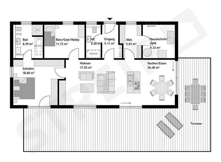 Mit STREIF haben Sie die Wahl zwischen 4 verschiedenen Ausbaustufen. Bei dieser Ausbaustufe 4 - Schlüsselfertig profitieren Sie von einem Komplettservice, der Ihnen Zeit und Aufwand spart. Sie können eine Eigenleistung in Form einer Muskelhypothek einbringen, um Ihre Kosten zu senken. Der Preis für dieses schlüsselfertige Traumhaus beginnt bei 381.371 EUR. Unser Bauberater-Team steht Ihnen zur Verfügung, um Ihre Wünsche zu besprechen und Ihnen bei der Planung Ihres individuellen Bungalows zu helfen.
