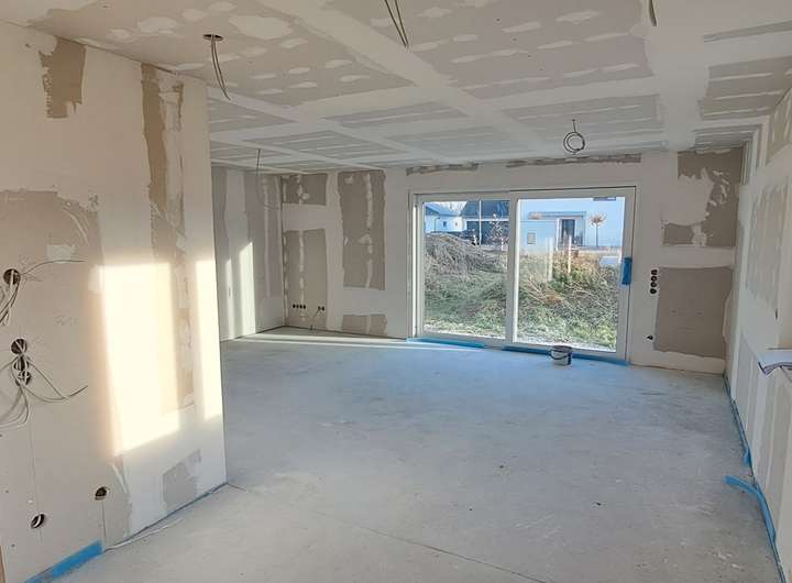 Der angebotene Preis ist für das Ausbauhaus inkl. Erschließung, ohne Innenausbau. Die Eigenleistung am Innenausbau ist nach Fertigstellung des Ausbauhauses möglich. Ein schlüsselfertiger Ausbau kostet ca. 185T EUR Aufschlag.