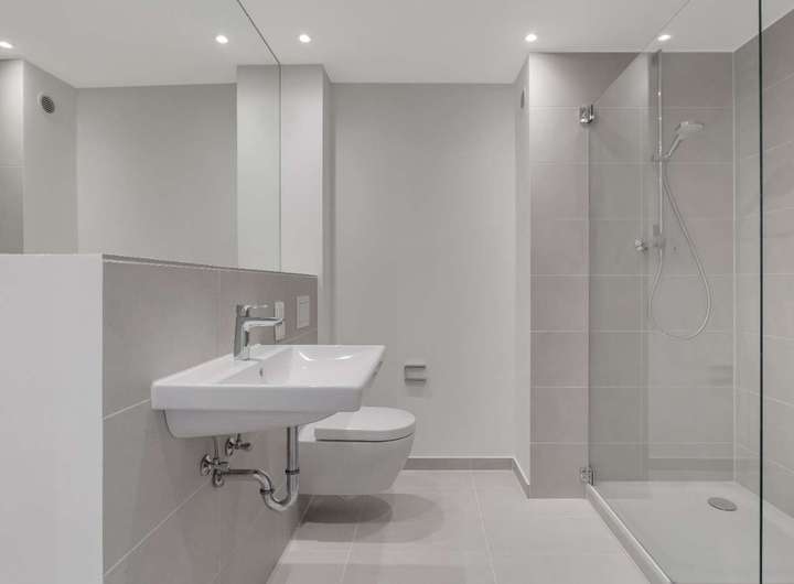 - Modernes Duschbad mit 30 x 60 cm großen Fliesen