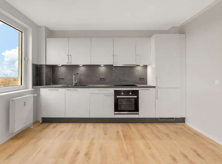 Stilvoll ausgewählte Materialien machen die Wohnung besonders und einzigartig. Die exklusiv sanierte Wohnung befindet sich im 12. Obergeschoss eines gepflegten Mehrfamilienhauses. Die Wohnfläche erstreckt sich über ein geräumiges Wohnzimmer mit Küchenbereich inklusive voll ausgestatteter Küche und Zugang zum Balkon, drei Schlafräumen, ein modern ausgestattetes Duschbad, einen separaten Abstellraum sowie einen Flurbereich. Alle Wohnräume sind mit hochwertigen Designbelag aus Vinyl ausgestattet, zudem wurden sämtliche Wände aufwändig geschliffen und fein verputzt. In diesem Zuge wurde die gesamte Elektrik sowie sämtliche Leitungen erneuert und dem heutigen Standard angepasst.
