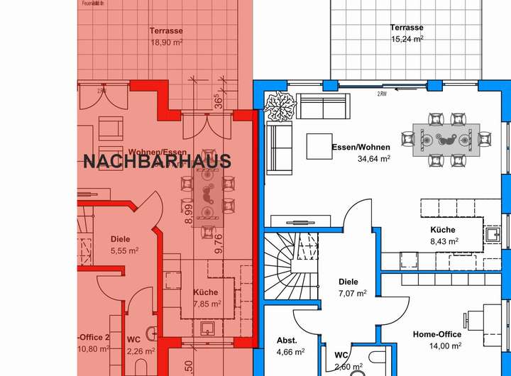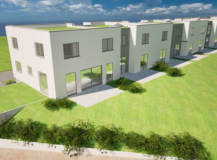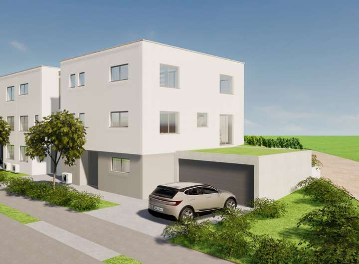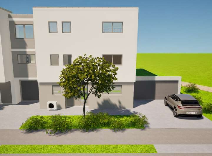 Der Hauseingang bietet mehr als ausreichend Platz für den Kinderwagen, schmutzige Schuhe und die komplette Garderobe. Fünf der großzügigen Räume lassen sich als Schlafzimmer oder auch Homeoffice nutzen, ganz egal ob Sie drei Kinderzimmer oder zwei Homeoffices und ein Gästezimmer benötigen. Ein weiteres Zimmer im OG wäre ebenfalls noch realisierbar. Für ausreichend Rückzugsorte ist somit in jedem Fall gesorgt. Auch der Platz zum Toben und Spielen kommt nicht zu kurz dank des großen Wohn- und Esszimmers. Erweitert wird dieser Familienraum durch die sonnige West-Terrasse und den großzügigen Garten in direkter Ortsrandlage. Im Angebot inklusive ist die begrünte Doppel-Garage und zwei Stellplätze. Auch die Außenanlage ist bereits im Kaufpreis enthalten. Die Grundstücke werden real geteilt und es besteht keine Wohnungseigentümergemeinschaft.