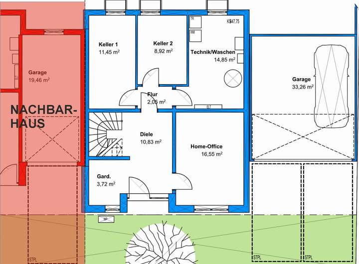 Übrigens im Untergeschoss ist auch eine Ausführung mit Einliegerwohnung möglich.