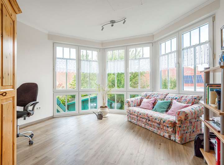 - zwei weitere Zimmer im Dachgeschoss möglich (Fenster und Heizung bereits vorhanden, Stehhöhe)