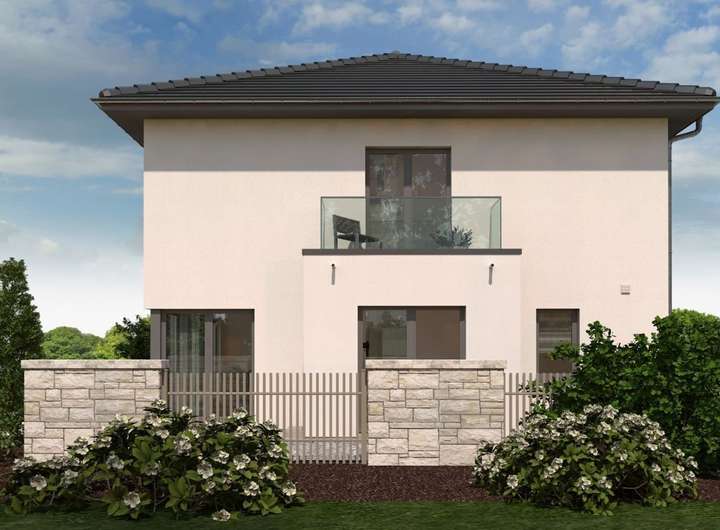 Imposant und souverän erscheint die repräsentative Stadtvilla. Ein Haus, das man gerne zeigt. Der 38 m² große Wohn-, Koch- und Essbereich gewährt größtmöglichen Gestaltungsspielraum. Die großen Glasflächen erweitern den Wohnraum optisch und lassen drinnen mit draußen verschmelzen. Das Konzept von Licht und Leichtigkeit setzt sich auch in der oberen Etage fort. Volle Deckenhöhe und großflächige Fenster verleihen jedem Raum ganz besondere Ausstrahlung. Hier lebt man unbeschwert und frei. Die Aufteilung der Räume ist flexibel.