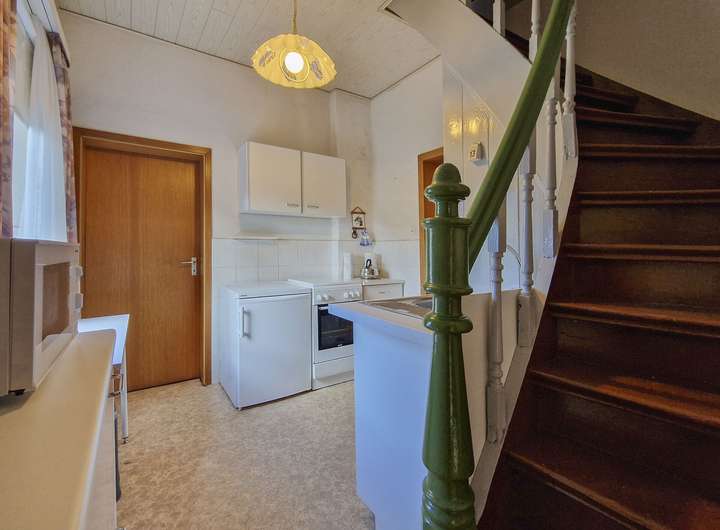 Über die Treppe in der Küche gelangen Sie in das Obergeschoss, wo Sie zwei weitere Zimmer erwarten. Diese lassen sich flexibel nutzen – beispielsweise als Schlafzimmer oder Kinderzimmer.