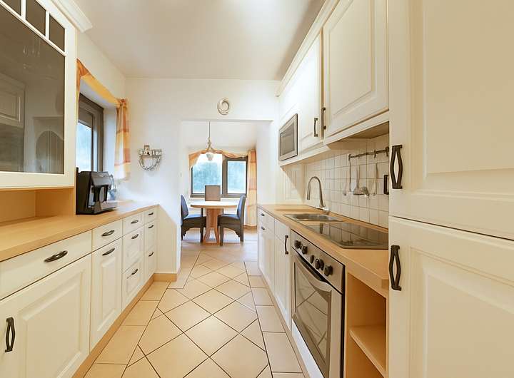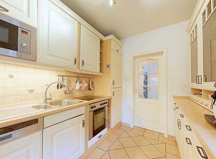 Das Obergeschoss lässt sich mit zwei weiteren Räumen auch als Einliegerwohnung nutzen, da hier bereits eine zweite Einbauküche, sowie ein modernes Duschbad installiert wurden.
