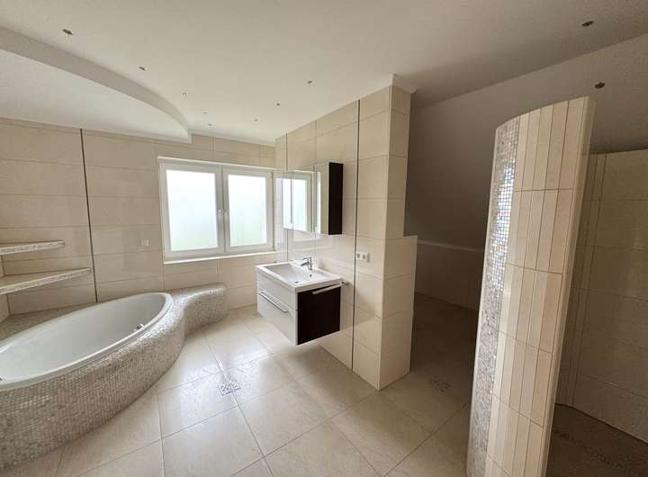 - großzügiges Badezimmer mit Badewanne, einer Dusche und WC