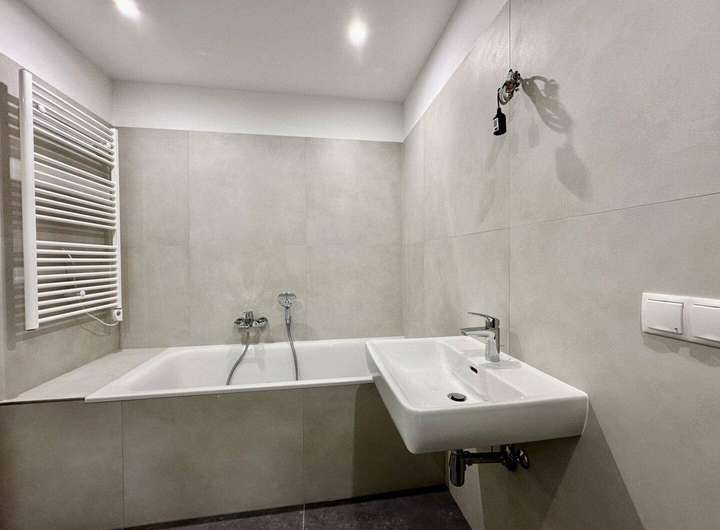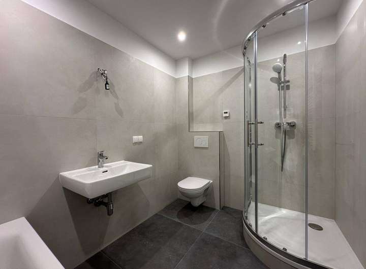 Hochwertiges Badezimmer mit Dusche, Badewanne, Waschbecken und WC