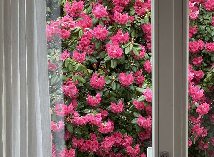 Beim Ankommen in der repräsentativen Diele empfinden Sie absolute Ruhe. Sie schauen durch eine große Glaswandscheibe auf einen prachtvollen Ginko-Baum mit einem zweiteiligen Stamm im hellen Kiesbett.