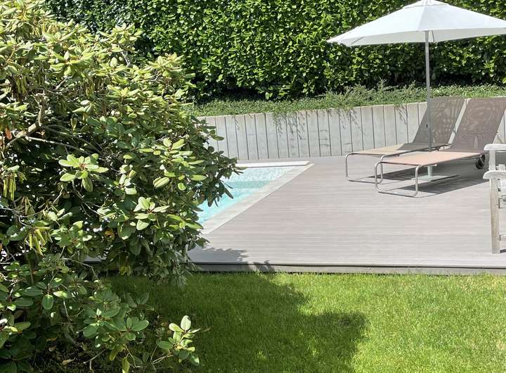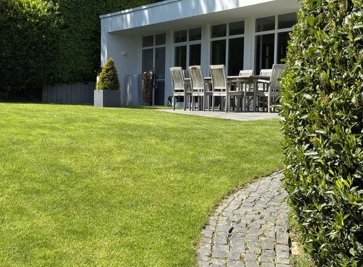 Schon beim Betreten des Grundstücks zeigt sich die geschmackvolle und harmonische Gestaltung von Haus und Garten. Klare Linien, große Fensterflächen und die wunderschöne doch zurückgehaltene Gartenbepflanzung vermitteln das Gefühl einer ruhigen Oase. Die ca. 40 m² große Südterrasse, teilweise überdacht, lädt zum Entspannen und geselligen Beisammensein im Freien ein, während der eingewachsene Garten mit Poolbereich eine geschützte Privatsphäre bietet.
