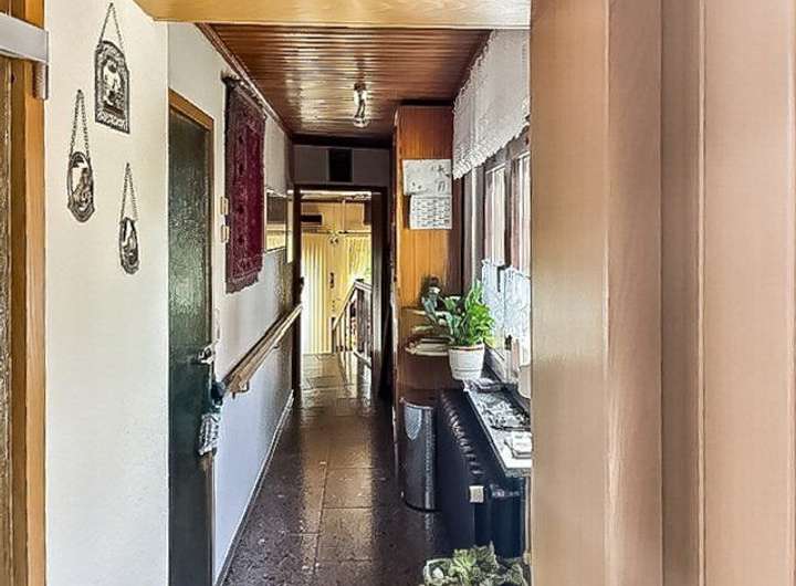 Auch die Technik überzeugt: Eine Gasheizung aus ca. 1992 sorgt zuverlässig für Wärme, während die Sanitäreinrichtungen bereits ca. 1990 überarbeitet wurden. Ergänzt wird das Haus durch eine große Einfahrt, praktisches Nebengelass sowie den wertvollen Stauraum eines Vollkellers – hier ist Platz im Überfluss vorhanden.