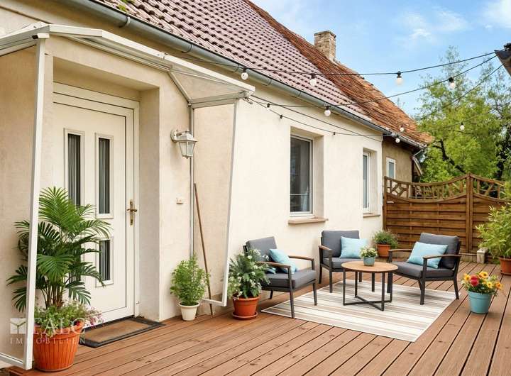 Wir freuen uns, Ihnen diese kompakte Doppelhaushälfte mit rund 60 m² Wohnfläche auf einem etwa 370 m² großen Grundstück anbieten zu dürfen.