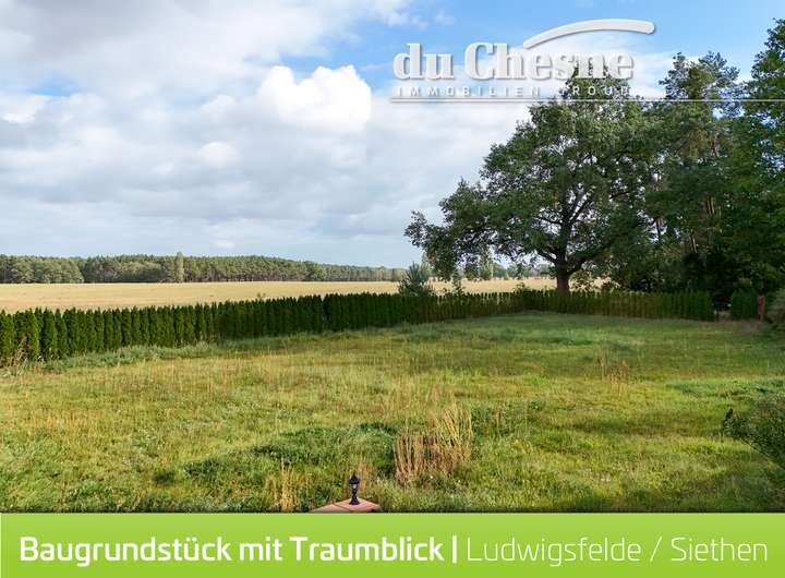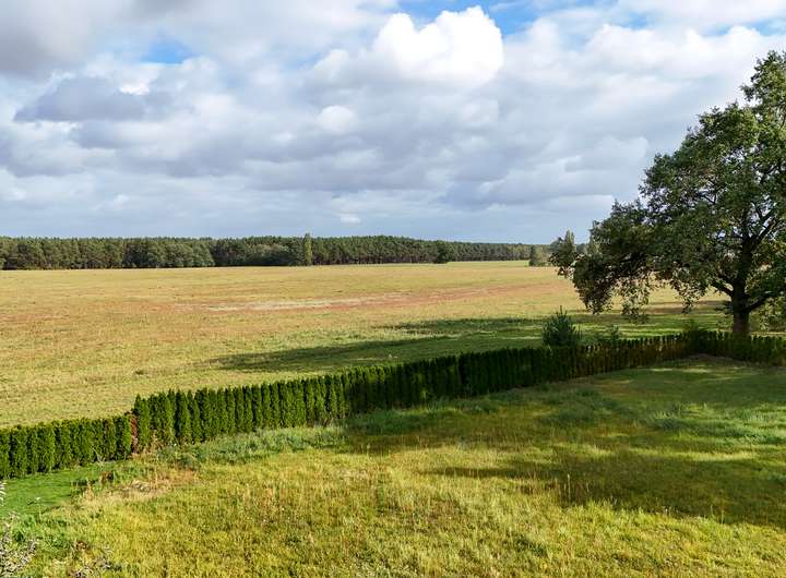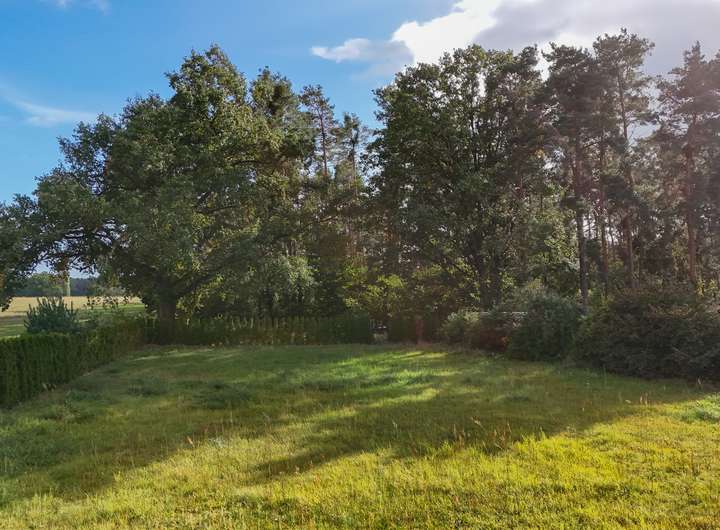 Grundstück in Seenähe mit Blick auf Feld und Wald