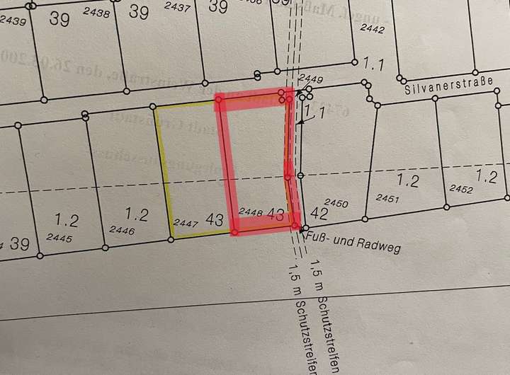 - *Hinweis:* Hinter dem Grundstück verläuft eine