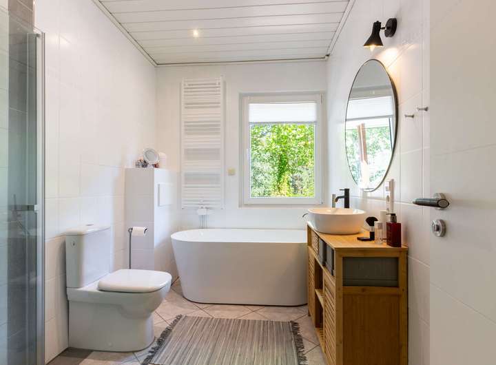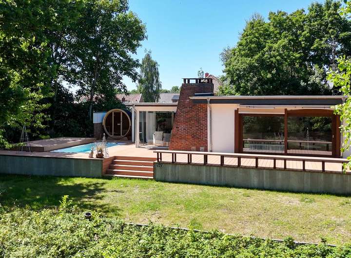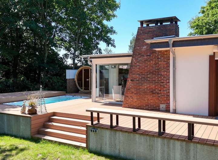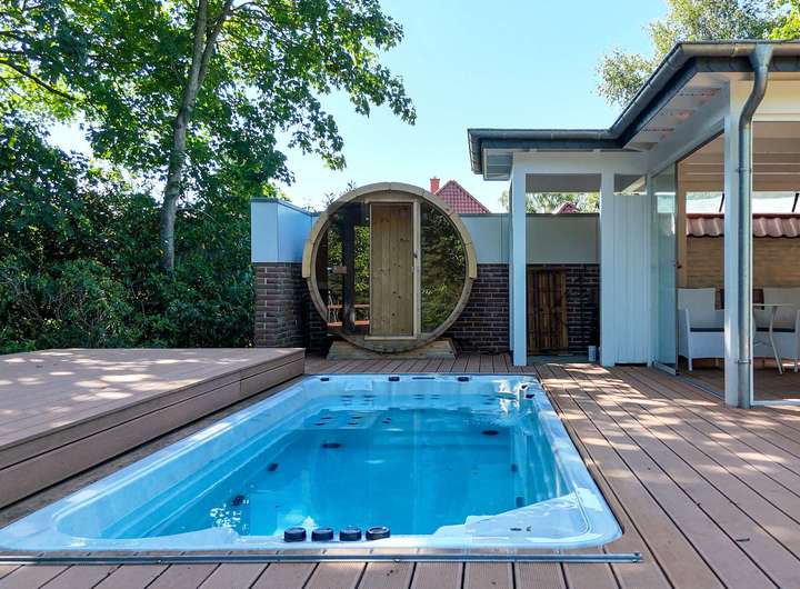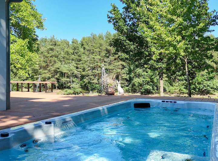 Das Herzstück des Außenbereichs ist der malerische rund 7.000 m² große See. Ob ein erfrischendes Bad im Wasser, inspirierende Stunden im idyllischen Seehaus oder ein Glas Wein bei Sonnenuntergang am Ufer – hier kommt die Seele zur Ruhe. Begleitet wird das Naturerlebnis von einer privaten Wellness-Oase: Ein sprudelnder Swimspa unter freiem Himmel, eine urige Fasssauna und eine großzügige Terrasse mit Weitblick ins Grüne laden zum Entspannen und Genießen ein.