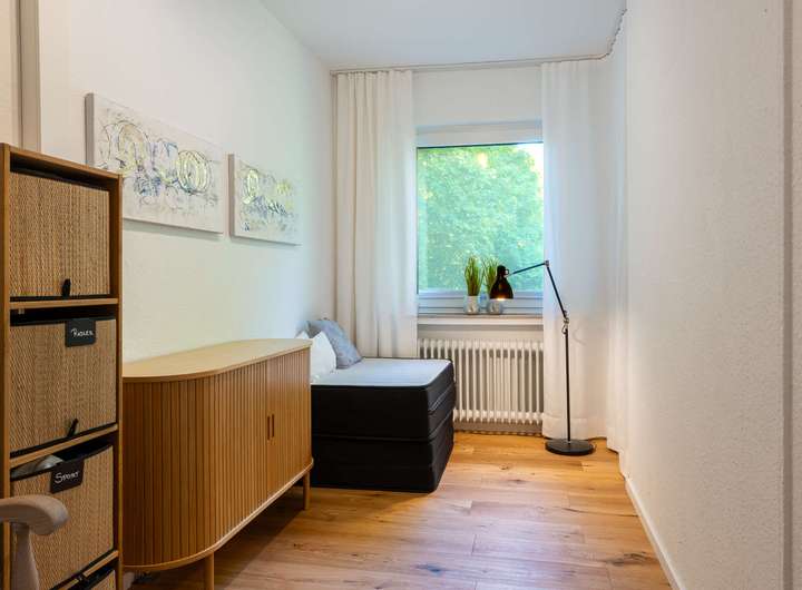 Für Besucher steht zudem ein separater Aufenthaltsraum mit Küche und Bad zur Verfügung.