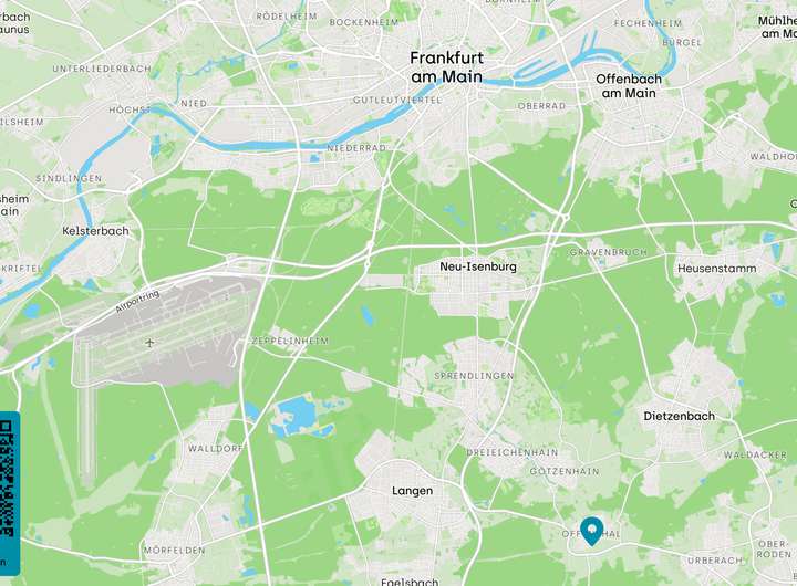 Der Bahnhof Offenthal ist in nur rund 7 Gehminuten erreichbar und bietet direkte Zugverbindungen nach Frankfurt, Darmstadt und Offenbach. Autofahrer profitieren von der schnellen Anbindung an die A661, A3 und A5, wodurch sowohl das Frankfurter Stadtzentrum als auch der Flughafen Frankfurt in kurzer Zeit erreichbar sind.