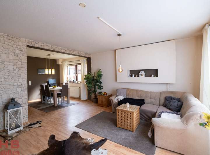Wichtiger Hinweis: Energieausweis ist beantragt und liegt in Kürze vor! Dieses charmante Reihenendhaus überzeugt durch eine durchdachte Raumaufteilung, helle Wohnbereiche und einen schönen Garten mit Terrasse. Es ist ideal für Familien oder Paare, die Wert auf Komfort und Gemütlichkeit legen. Bereits beim Betreten des Hauses empfängt Sie ein kleiner Eingangsbereich mit Garderobe. Von hier aus gelangen Sie in einen weiteren Flur, von dem sich links der praktische Hauswirtschaftsraum sowie ein Gäste-Bad mit WC befinden. Rechts liegt die gut ausgestattete Küche, die mit Herd, Kühlschrank, Gefrierschrank und allen wichtigen Geräten keine Wünsche offenlässt. Der Flur öffnet sich anschließend in das großzügige, offene Wohn- und Esszimmer. Große Fensterfronten sorgen hier für viel Tageslicht und bieten direkten Zugang zur sonnigen Terrasse sowie zum gepflegten Garten. Ein perfekter Ort zum Entspannen oder für gesellige Abende mit Familie und Freunden. Über eine elegante Wendeltreppe erreichen Sie das Obergeschoss. Hier erwarten Sie drei Zimmer, die sich flexibel als Hauptschlafzimmer und Kinder- oder Gästezimmer nutzen lassen. Abgerundet wird diese Etage durch ein großes, komfortables Badezimmer mit Badewanne und Dusche. Über eine Leiter gelangt man auf den Dachboden, welcher mit ca. 18m² ausreichend Stauraum für Surfbretter und Skier aus den letzten Urlauben oder Kleidung und alte Spielsachen liefert. Zur Immobilie gehört außerdem eine Garage, die nur etwa 50 Meter vom Haus entfernt liegt und für sicheres Parken sorgt.