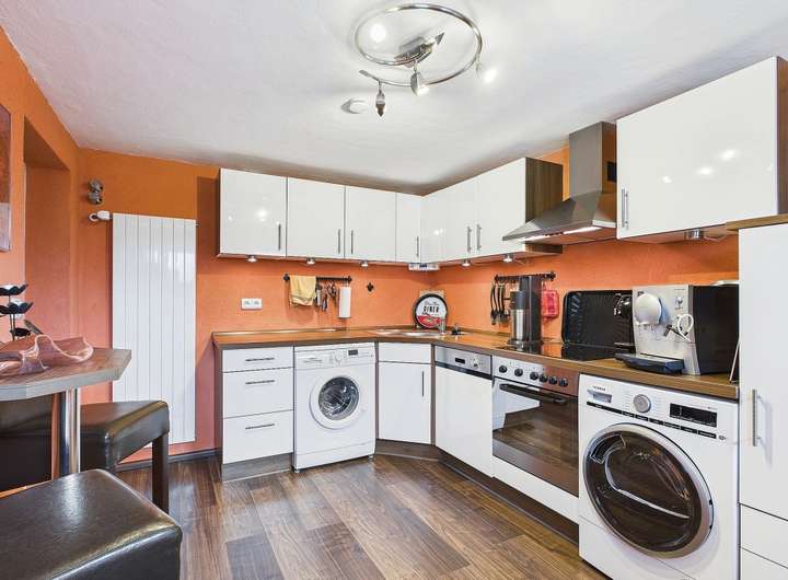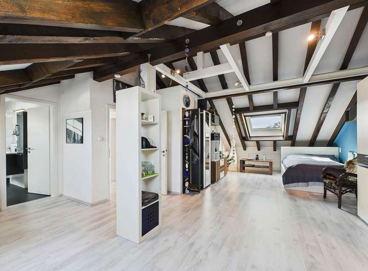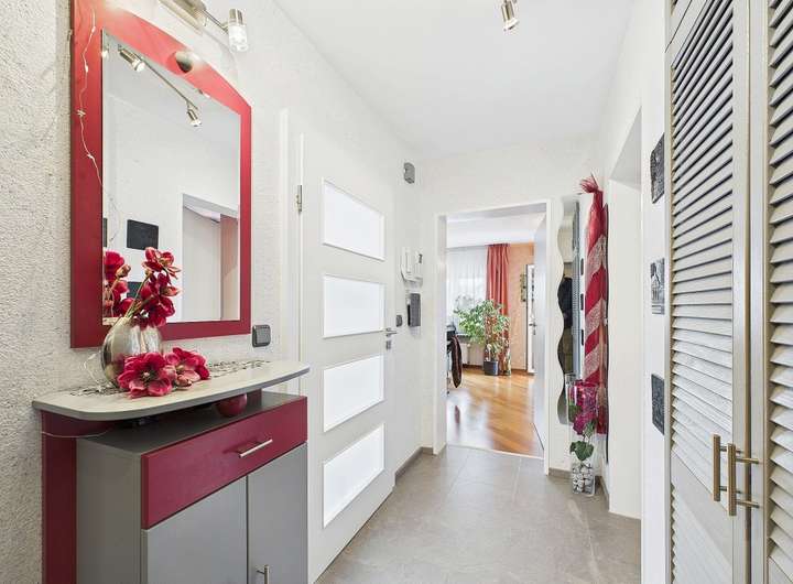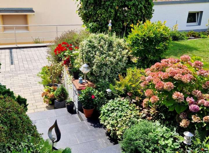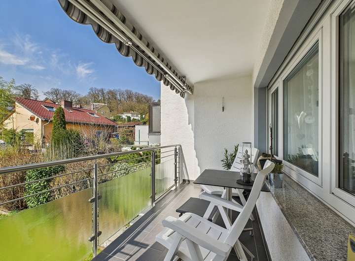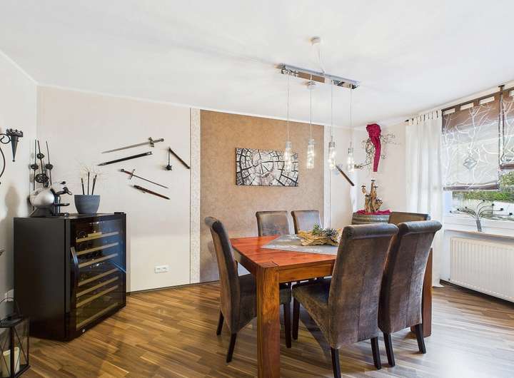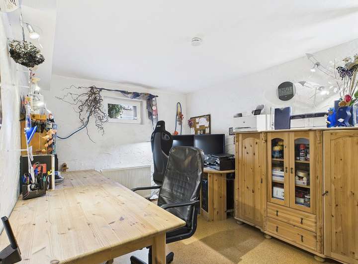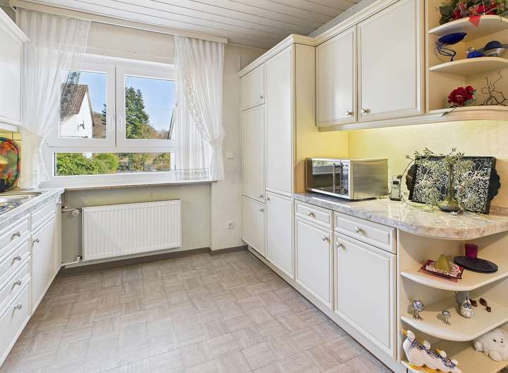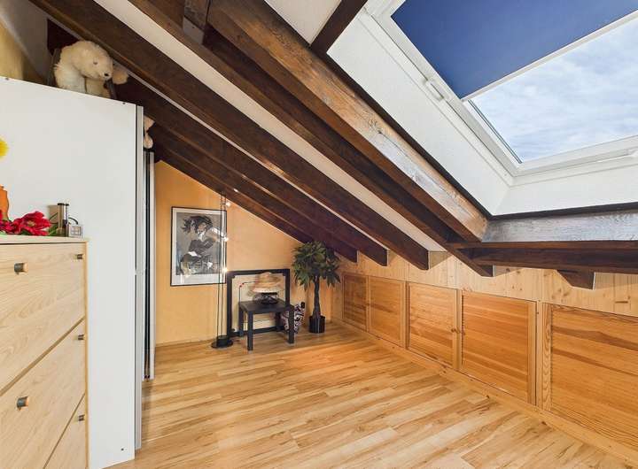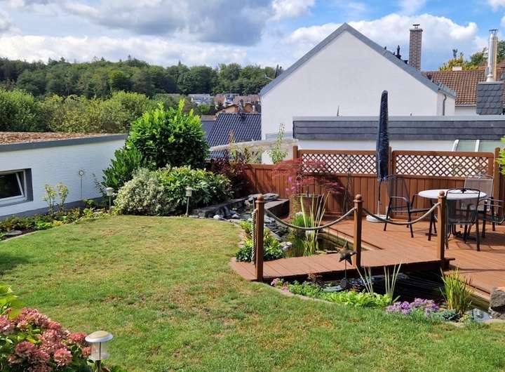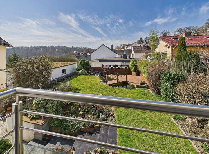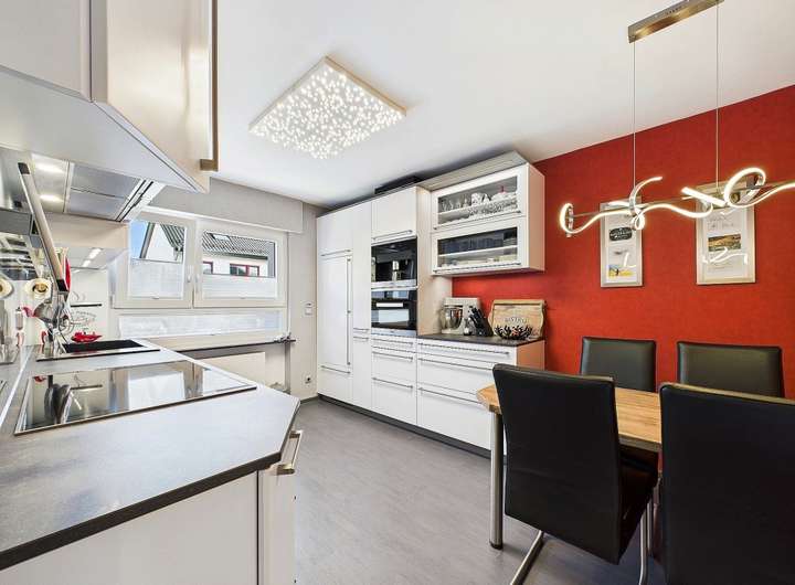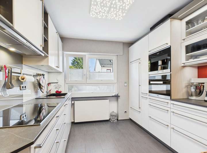 Ausstattung und Highlights im Überblick: - Idyllische Gartenoase mit kleinem Teich und Terrasse, in sonniger Westlage - Einladender Vorgarten und Hauseingangsbereich – denn schon der erste Eindruck zählt - Garage mit elektrischem Tor und weitere PKW-Stellplätze in der Hofeinfahrt - Exklusive Einbauküche im modernen Design mit hochwertiger Ausstattung - Premium-Küchengeräte überwiegend Miele - Funktionale Einbauküche im Obergeschoss - Praktische Single-Küche im Dachgeschoss - Dachstudio komplett wohnraumähnlich ausgebaut (Nutzfläche) - Zwei überdachte Sonnenbalkone mit Westausrichtung und Markisen - Hochwertig Gepflasterte Hofeinfahrt - Wärmegedämmte Fassade und Dach für optimale Energieeffizienz - 3 Tageslichtbäder, davon zwei mit Badewanne und eines mit Dusche - 2 Gästetoiletten und zusätzlich ein WC im Keller - Elektrische Rollläden, teils mit programmierbarer Zeitschaltung - Elektrisch bedienbare Dachflächenfenster mit Innenjalousien - Elektrischen Außenrollläden und Regensensor an den Dachfenstern (mit Fernbedienung) - Gas-Brennwertheizung mit zentraler Wasseraufbereitung (von 2001) - Partyküche im Keller mit Gartenzugang – ideal für gesellige Anlässe. - Großer Hobbyraum und separater Büroraum im Keller - Vorratskeller und Lagerraum - Praktische Abstellkammern in beiden Wohnungen - Böden: Parkett, Laminat und Fliesen