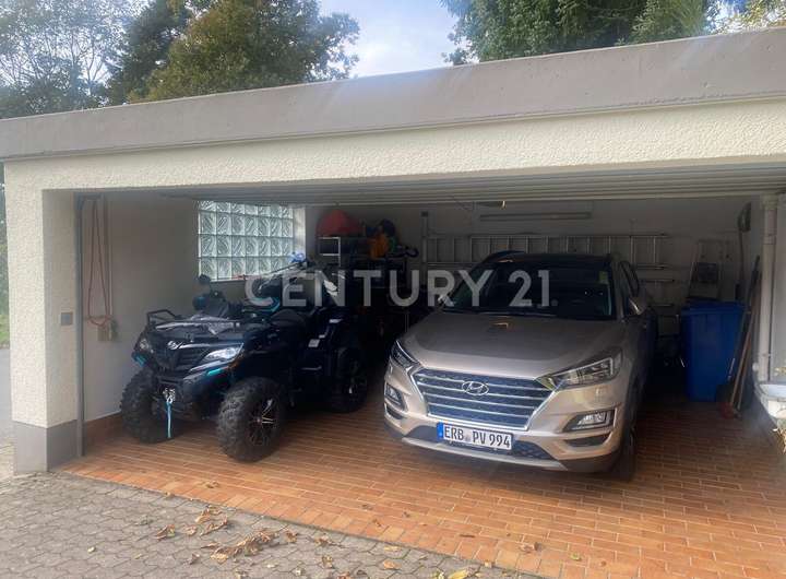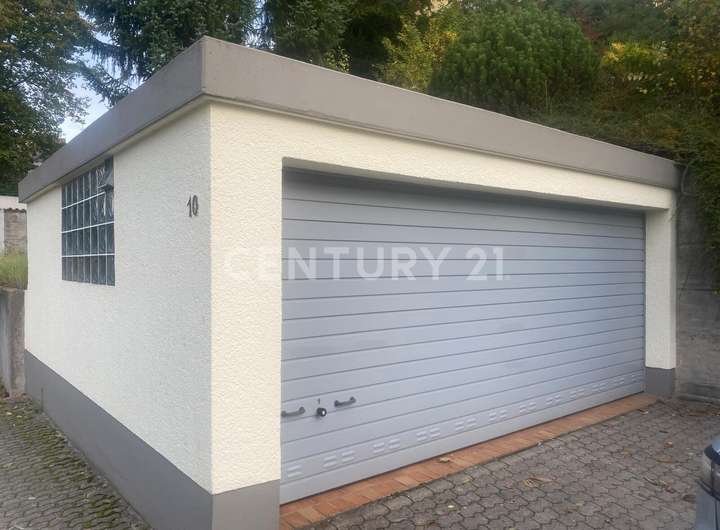 Die Hanglage des Grundstücks sorgt für Privatsphäre und eine schöne Aussicht, erfordert jedoch den Zugang über ca. 50 Stufen. Für Fahrzeuge steht eine geflieste Doppelgarage zur Verfügung, mit elektrischem Rolltor, Strom und Wasserversorgung, die praktischen Stauraum und witterungsgeschützte Stellplätze bietet.