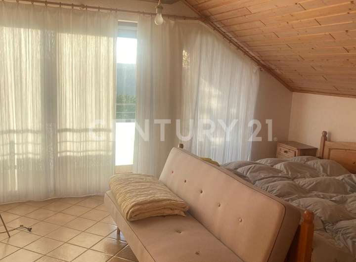 Das Haupthaus verfügt über insgesamt vier Zimmer, darunter ein geräumiges Wohn-Esszimmer mit direktem Zugang zur sonnigen Terrasse, eine Küche, drei Schlafzimmer sowie ein Badezimmer und ein Gäste-WC. Durch die geschickte Raumaufteilung entstehen helle und freundliche Wohnräume, die ein angenehmes Wohngefühl vermitteln.