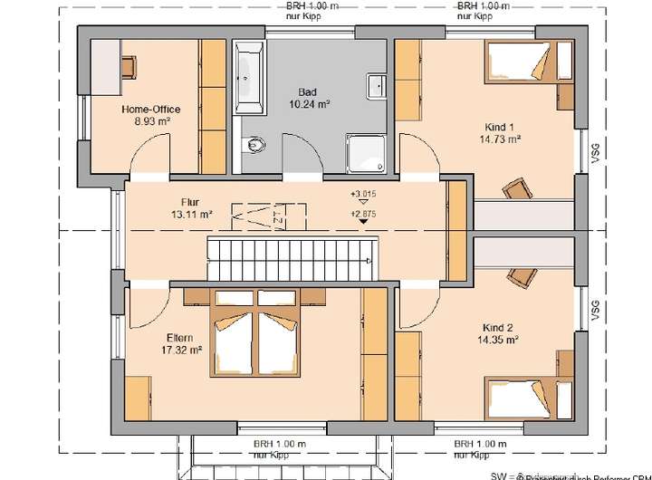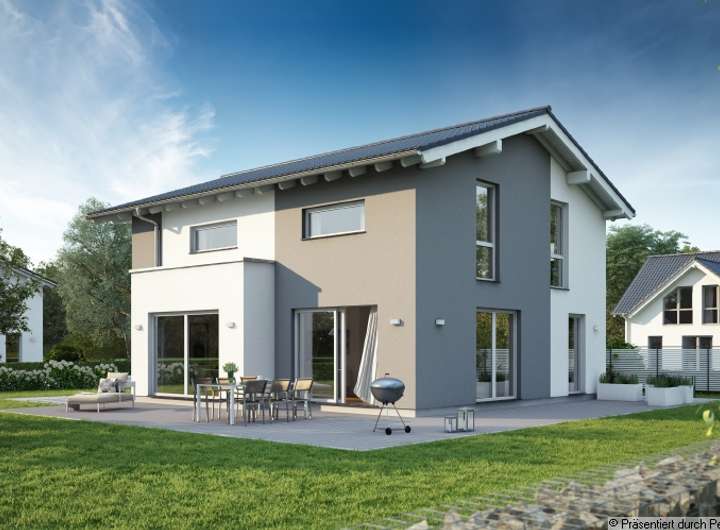 Dieses familienfreundliche Haus wird Ihrer Familie gefallen. Das Familienhaus Vero überzeugt auf über 160 Quadratmetern durch die Großzügigkeit der Räume sowie seiner offenen Grundrissgestaltung im Wohnbereich: Die offene Küche und der Wohn- und Essbereich umfassen zusammen über 50 Quadratmeter und haben bodentiefe Fenster oder Türen. An die Küche, die Sie mit einer Kochinsel ausstatten können, angeschlossen ist eine praktische Speisekammer. Highlight des Hauses ist der Flachdacherker im Wohnzimmer. Sowohl vom Wohn- und Esszimmer als auch von der Küche aus haben Sie Zugang zum Garten. Gemütlichkeit, gepaart mit attraktiver Innenraumgestaltung sowie einem direkten Blick und Zugang in den Garten prägen die gesamte Wohnatmosphäre. Das Erdgeschoss wird komplettiert durch ein Gäste-WC, eine Garderobennische in der Diele und den Hauswirtschaftsraum. Hingucker im Eingangsbereich ist die geradläufige Treppe, die ins Dachgeschoss führt. Dort finden sich zwei fast gleich große Kinderzimmer, ein Eltern-Schlafzimmer, ein Badezimmer und ein Home-Office, das auch als Gästezimmer genutzt werden kann. Alle Zimmer verfügen über bodentiefe Fenster, die für ausreichend Helligkeit sorgen. Modern sind auch die Fenster im Drempelbereich und die mögliche Fassadengestaltung durch farbige Putzflächen. Dieses Haus wird nach Ihren individuellen Wünschen geplant und ausgestattet!