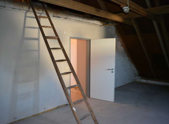 Im Obergeschoss ist ein Gästezimmer mit Dachgaube vorhanden sowie zwei Dachbodenräume, die zu weiteren Räumen ausgebaut werden könnten.