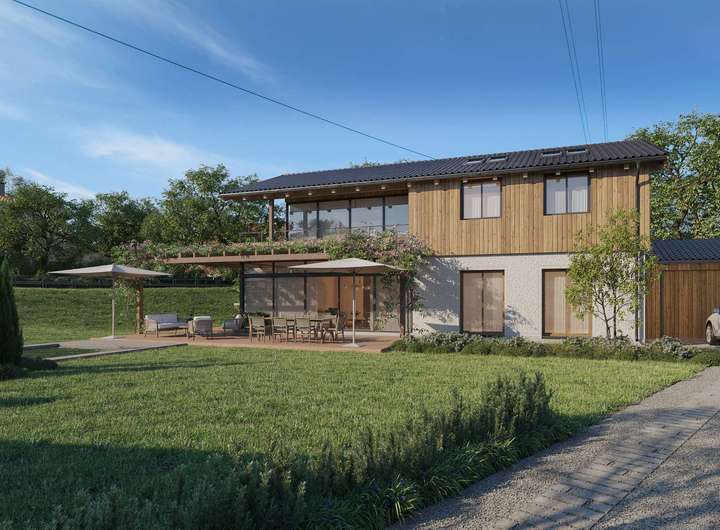 Um das enorme Potenzial dieses Grundstücks zu verdeutlichen, haben wir für Sie einen modernen und zugleich gemütlichen Entwurf eines Einfamilienhauses entwickelt.