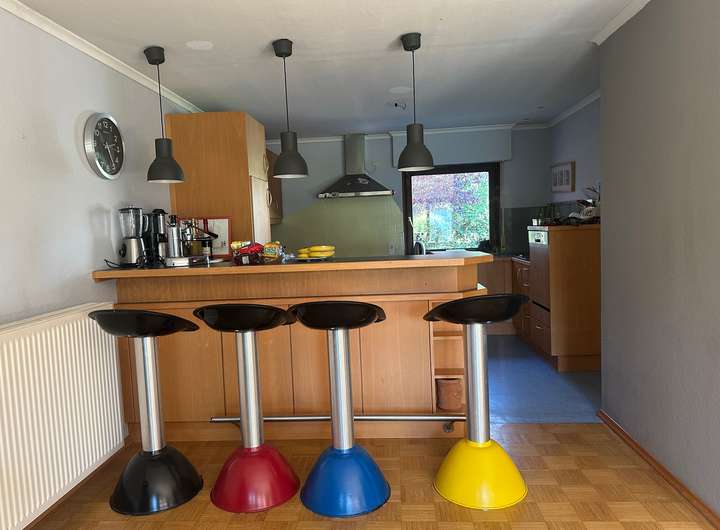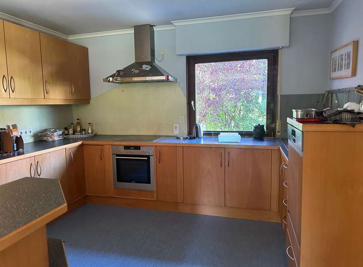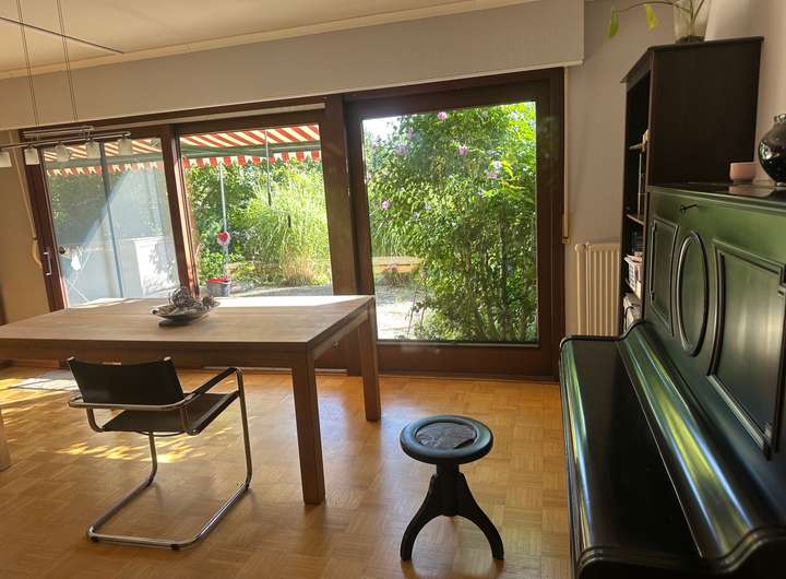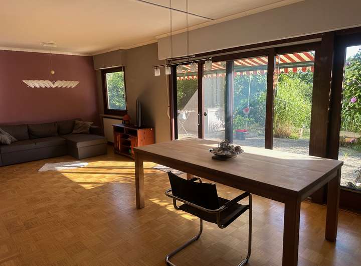 Dieses schöne Einfamilienhaus wurde Anfang der 2000er Jahre den heutigen Wohnstandards angepasst. Die Küche wurde zum Wohnbereich geöffnet. Der Wohn-/Essbereich ist mit Eichenparkett ausgelegt. Hinzu kommt ein zeitloser, hochwertiger Kaminofen mit Speckstein. Die große Glasschiebetür öffnet den Wohnbereich zur Terrasse hin. Im Erdgeschoss befinden sich ein Gäste-WC, ein Voll- und Duschbad sowie 2 weitere Zimmer.