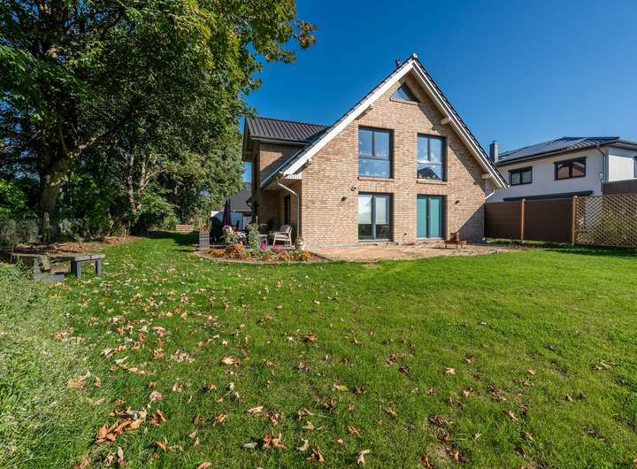 In Klein Gladebrügge erwartet Sie ein modernes Zuhause, das 2023 fertiggestellt wurde und mit viel Liebe zum Detail überzeugt. Das freistehende Einfamilienhaus wurde als energieeffizientes KfW-55-Haus errichtet und vereint durchdachte Architektur mit hochwertiger Ausstattung. Auf rund 216 m² Wohnfläche finden Familien reichlich Platz zum Wohlfühlen. Das etwa 1.024 m² große Grundstück liegt ruhig und naturnah – ideal für alle, die Komfort und Privatsphäre schätzen.