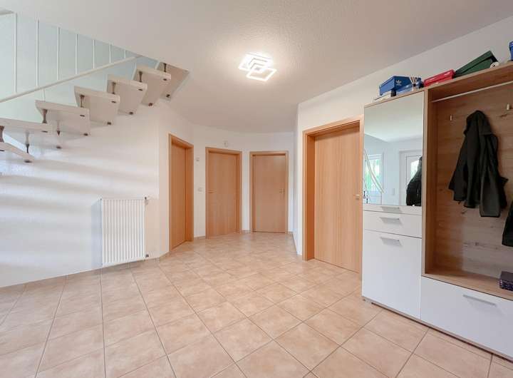 Zum Haus gehört außerdem eine massiv gebaute Einzelgarage. Beheizt wird die Immobilie über eine Gaszentralheizung. Der allgemeine Zustand des Hauses ist gepflegt – es bietet eine solide Basis für neue Eigentümer, die sich ein großzügiges Zuhause in naturnaher Lage wünschen.