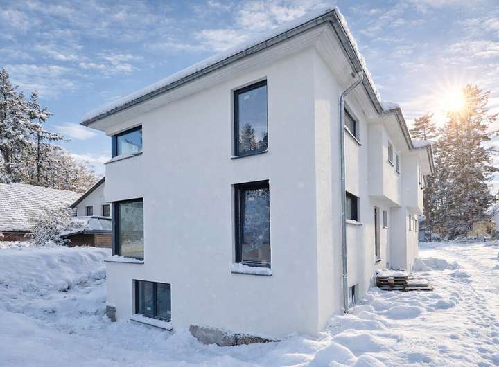 Die Stadtvillen erhalten weiße, wärmegedämmte Fassaden, kontrastreiche Fenster und eine dunkle Dacheindeckung mit Tonpfannen. Die Stadtvillen sind GEG-2024-konform und verfügen über eine zentrale Be- und Entlüftungsanlage mit Wärmerückgewinnung, Photovoltaikanlagen mit Akkuspeichermöglichkeit, eine Luft-Wasser-Wärmepumpe und dreifach verglaste Fenster. Ein offener PKW-Stellplatz mit Wallbox-Anschluss sowie ein Glasfaseranschluss sind im Kaufpreis enthalten, ebenso alle Bauneben- und Anschlusskosten. Eine Käuferprovision entfällt. Die gezeigten Visualisierungen können Zusatzausstattungen enthalten.